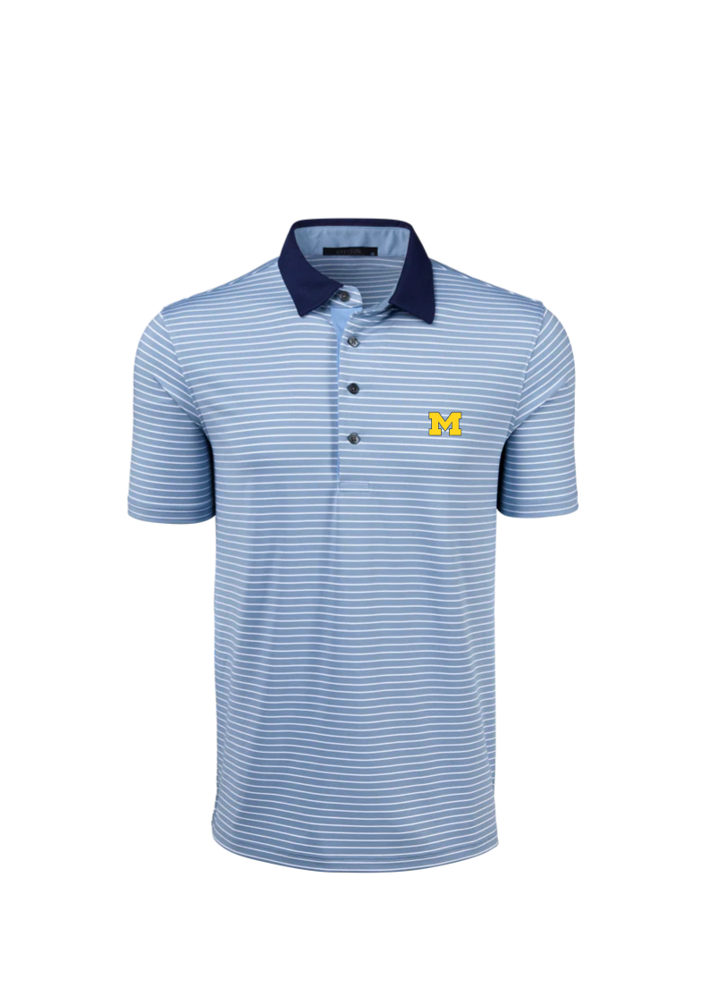 The Bixby Polo delivers a classic striped pattern on breathable performance fabric that combines stretch with quick-drying comfort. Designed with a comfortable, performance fit, it adapts effortlessly to any occasion. The lightweight fabric ensures ease of movement and all-day wearability. Finished with a solid jersey self collar, open cuffs, and a four-button placket with contrast detailing.