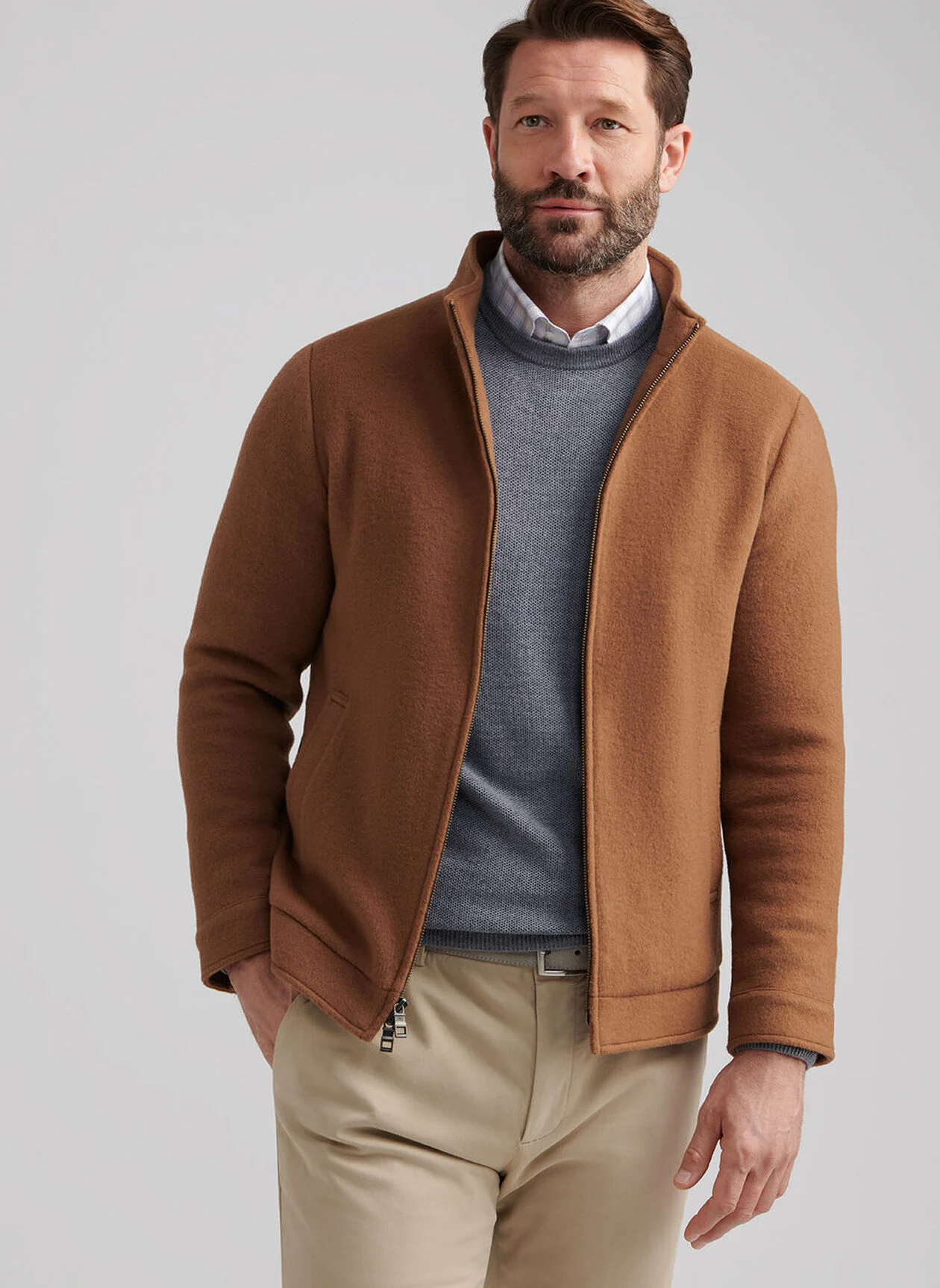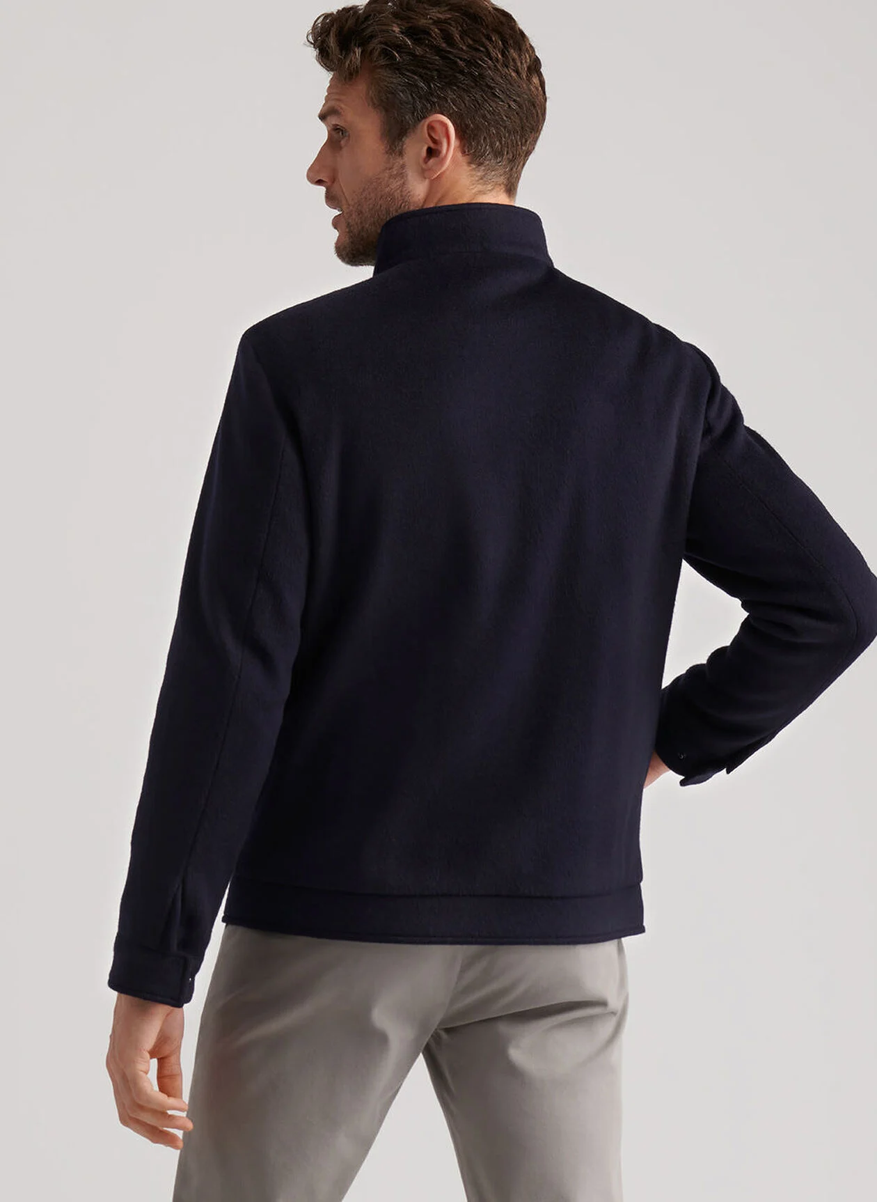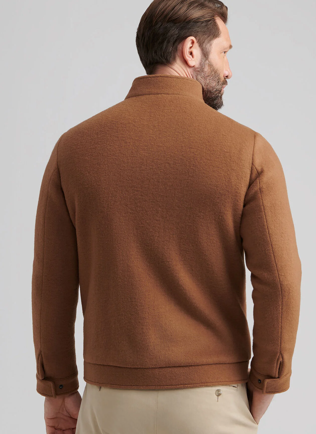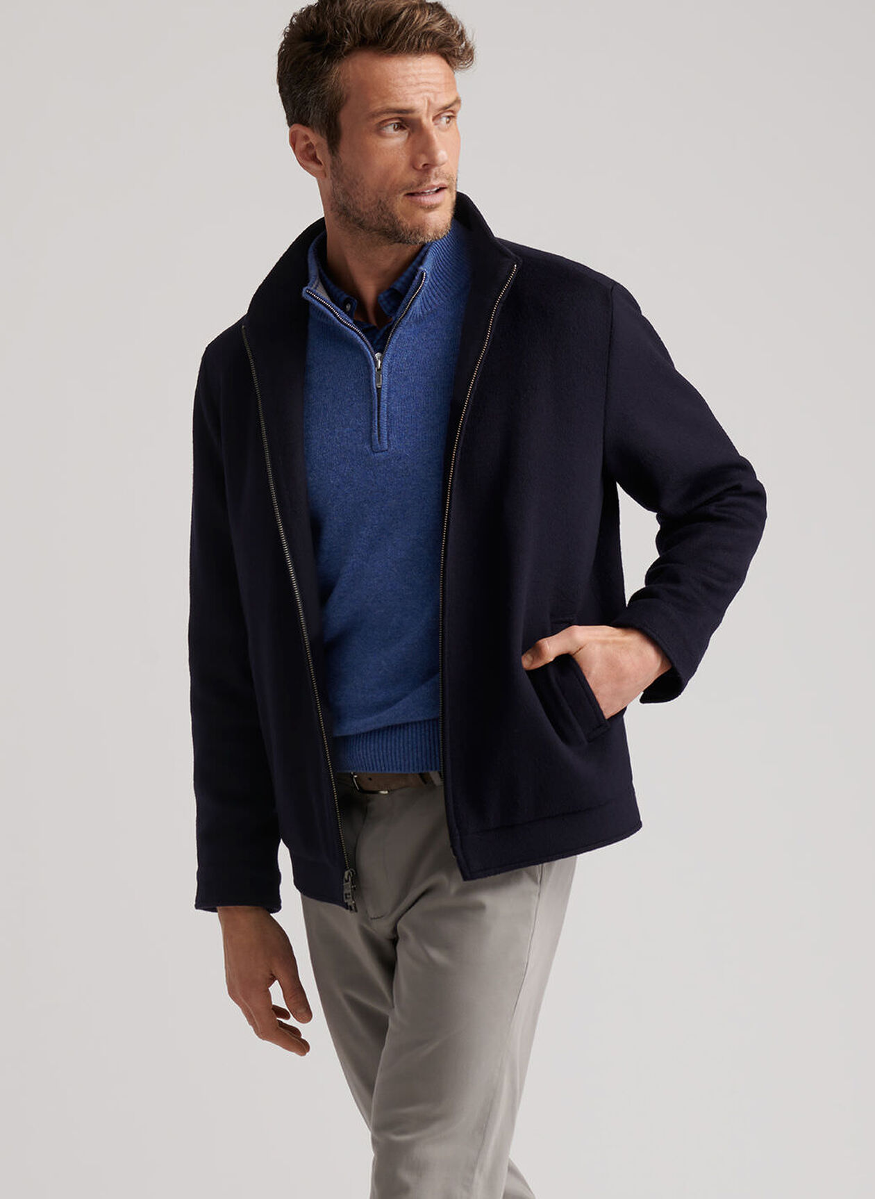 Men's 100% Merino wool bomber Metal zipper Hand wash cold; lay flat to dry or dry clean Classic Fit Model is 6'1", wearing a size Medium